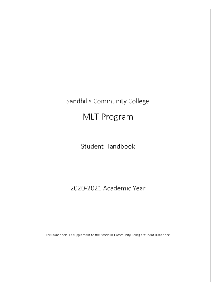 Sand hills Community College MLT Program Student Handbook20202021 Academic Earths handbook is a supplement to the Sand hills Community College Student HandbookTABLE OF CONTENTS COVID-19 PROCEDURES