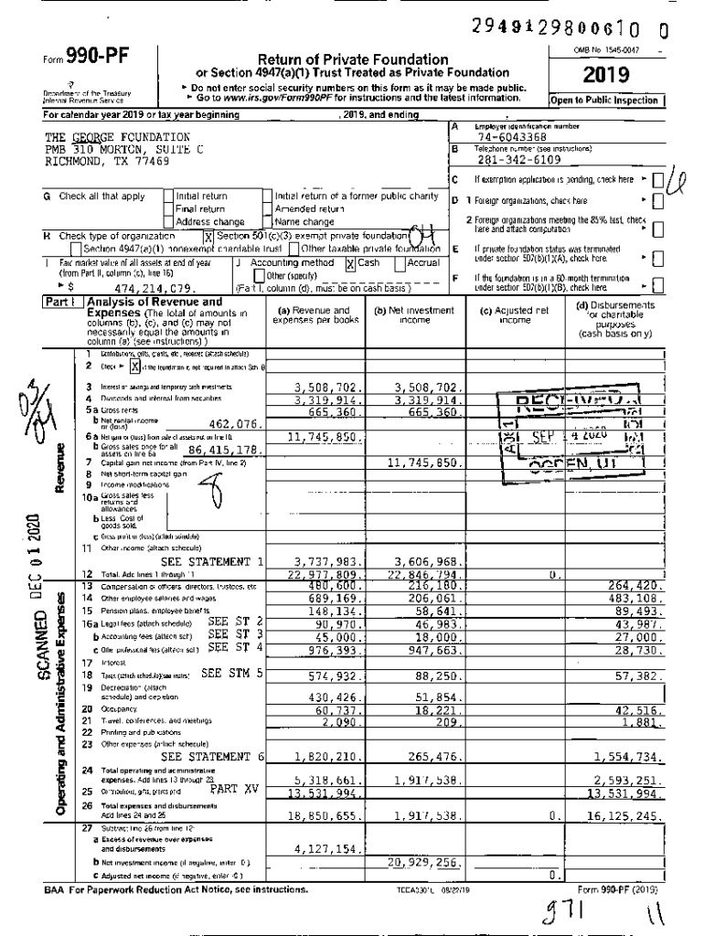 Form990PFOMS No 15450047Return of Private Foundation2019or Section 4947(a)(1) Trust Treated as Private Foundation