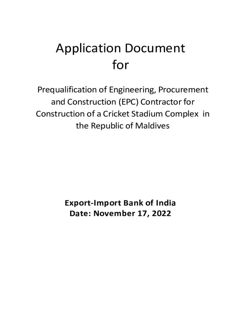 Application Document for Prequalification of Engineering, Procurement and Construction (EPC) Contractor for Construction of a Cricket Stadium Complex in the Republic of MaldivesExportImport Bank of