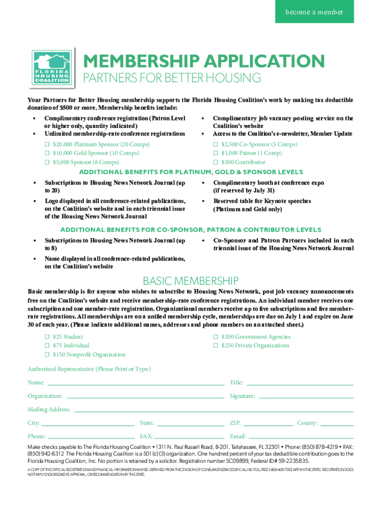 Become a memberMEMBERSHIP APPLICATION PARTNERS FOR BETTER HOUSINGYour Partners for Better Housing membership supports the Florida Housing Coalitions work by making tax-deductible donation of $500