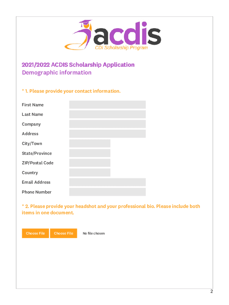 2021/2022 ACDI Scholarship Application The purpose of this scholarship is to assist CDI professionals by enhancing their careers with further education and to increase collaboration among colleagues