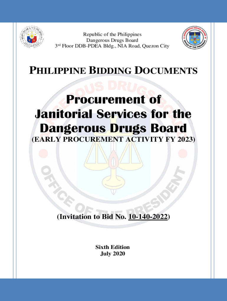 Republic of the Philippines Dangerous Drugs Board rd 3-Floor DDEA Bldg., NIA Road, Quezon CityPHILIPPINE BIDDING DOCUMENTSProcurement of Janitorial Services for the Dangerous Drugs Board (EARLY PROCUREMENT