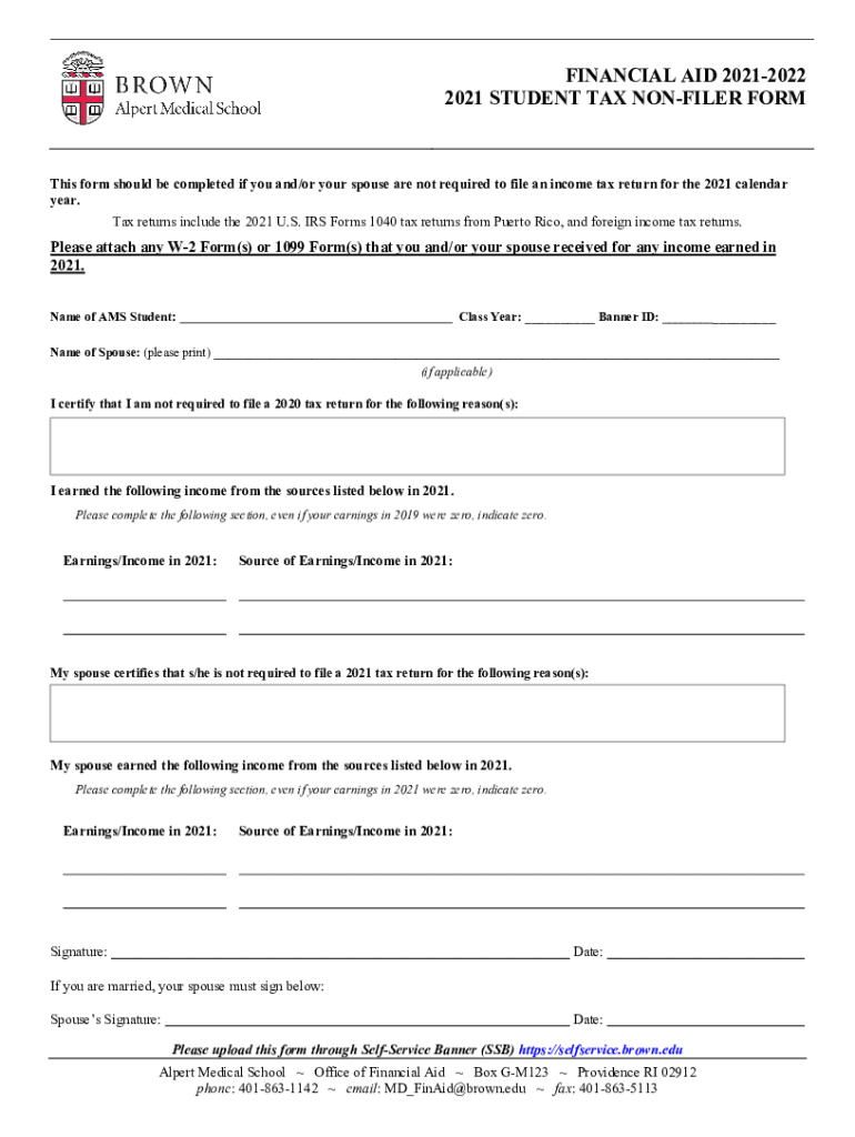 Get the free Student Tax Return 20212022 Non-Filer Form Financial Aid