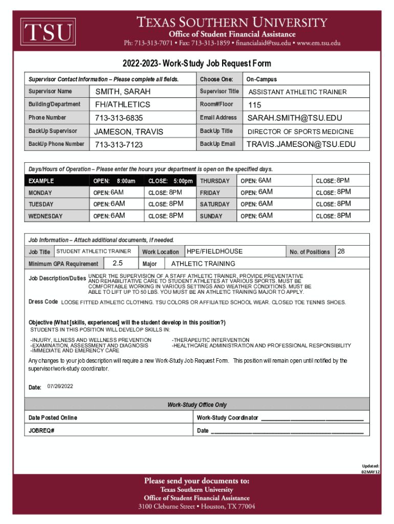 Get the free Campus Department Supervisor Name Email Description