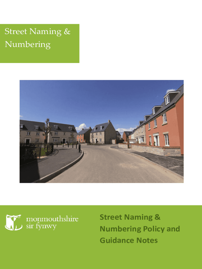 StreetSStreet Naming & NumberingStreet Naming & Numbering Policy and Guidance Notes Version Control1TitleMonmouthshire County Council Street Naming & Numbering Policy and Guidance NotesPurposeLegal