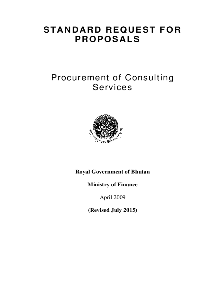STANDARD REQUEST FOR PROPOSALSProcurement of Consulting Services Royal Government of Bhutan Ministry of Finance April 2009 (Revised July 2015)Preface This Standard Request for Proposals (RFP) is based
