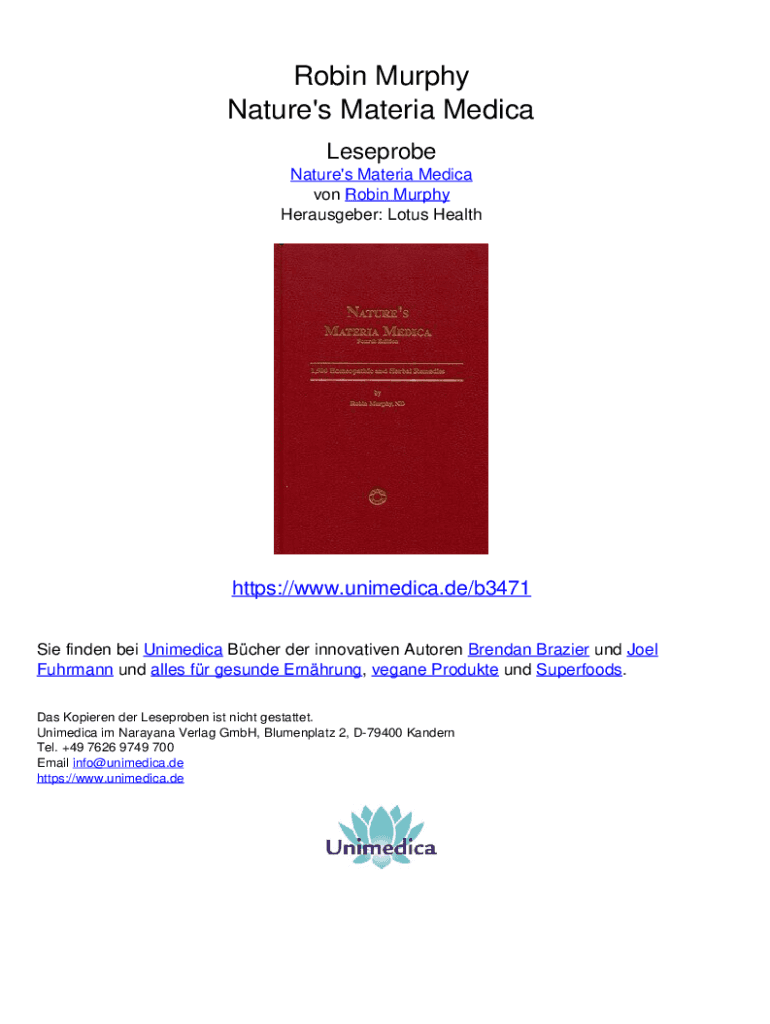 Robin Murphy Nature\'s Material Media Leseprobe Nature\'s Material Media on Robin Murphy Herausgeber: Lotus HealthCorps://www.unimedica.de/b3471 She finder BEI UNEDIC Ocher her innovative Authored