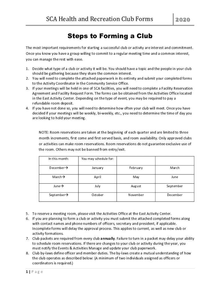 Get the free SCA Health and Recreation Club Forms Steps to Forming a Club