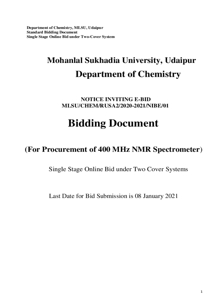 Single Stage Online Bid undercover SystemMohanlal Sharia University, UdaipurDepartment of Chemistry