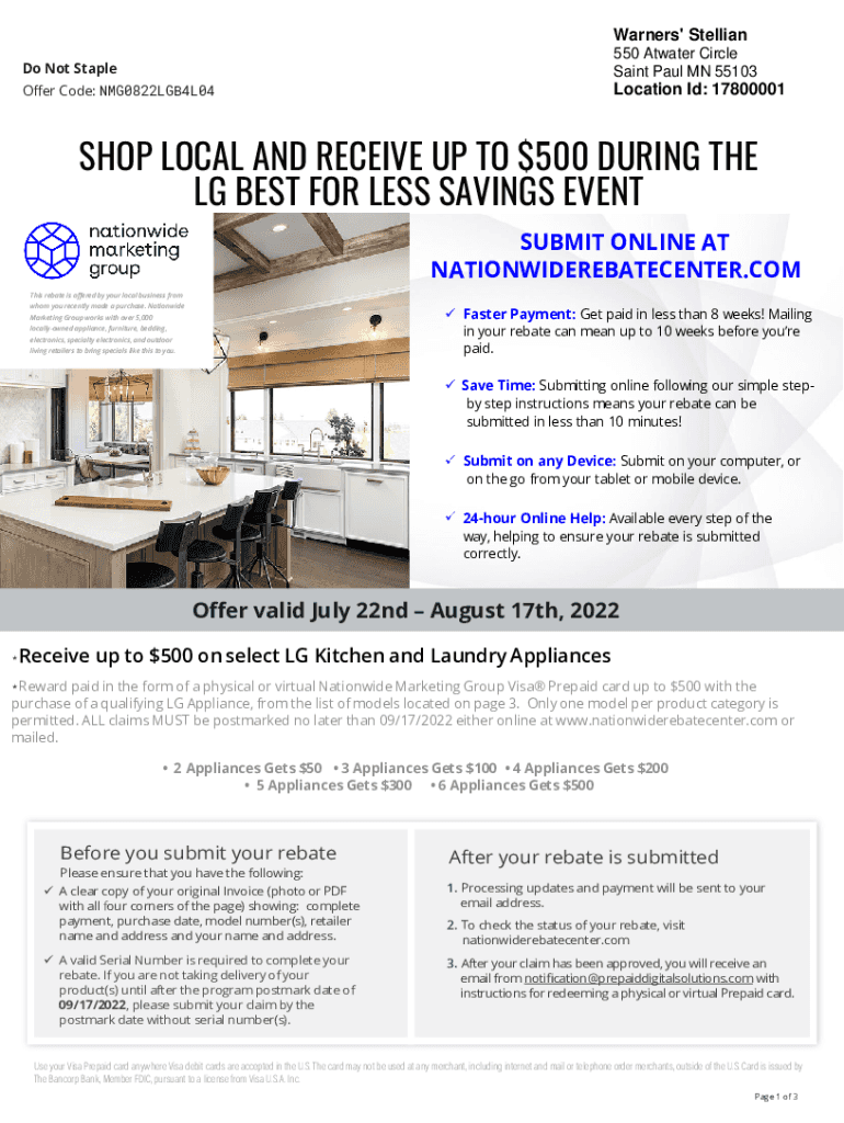 Warner's\' Stellar Do Not Staple550 At water Circle Saint Paul MN 55103Oer Code: NMG0822LGB4L04Location I'd: 17800001SHOP LOCAL AND RECEIVE UP TO $500 DURING THE LG BEST FOR Fewer SAVINGS EVENT SUBMIT