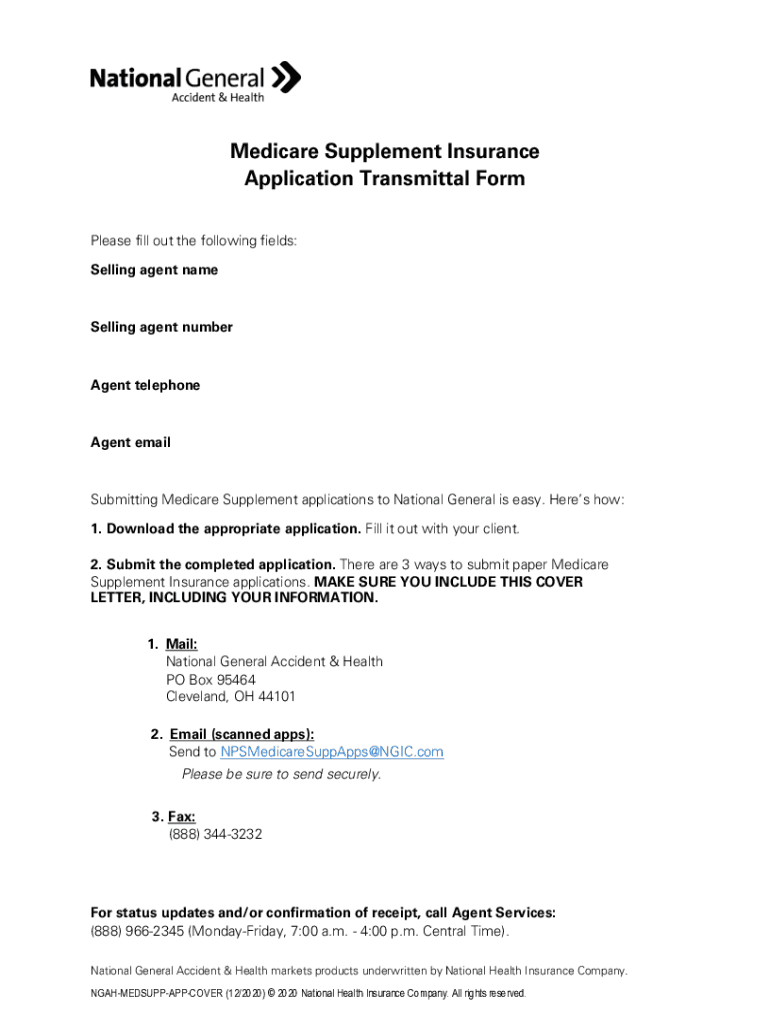 Medicare Supplement Insurance Application Transmittal Form Please fill out the following fields: Selling agent reselling agent numberAgent telephoneAgent emailSubmitting Medicare Supplement applications
