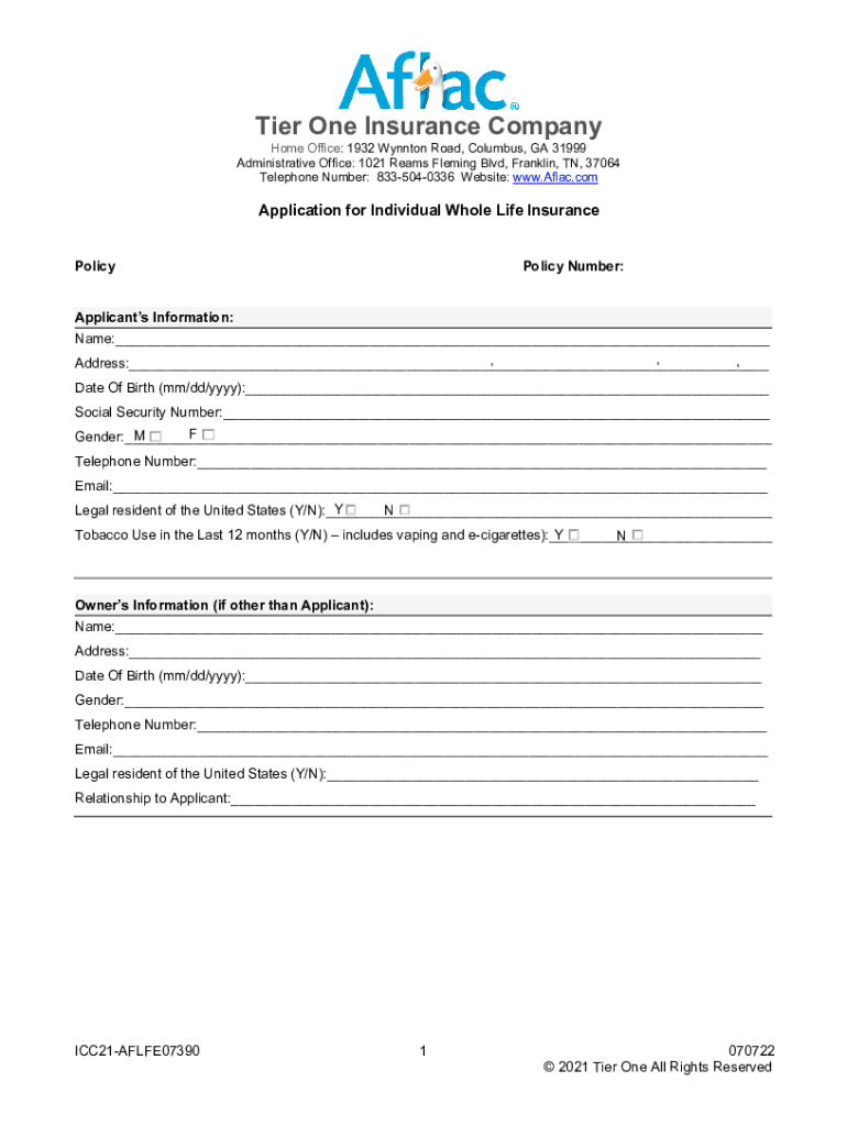 Telephone Number: 8335040336 Website: www.Aflac.comApplication