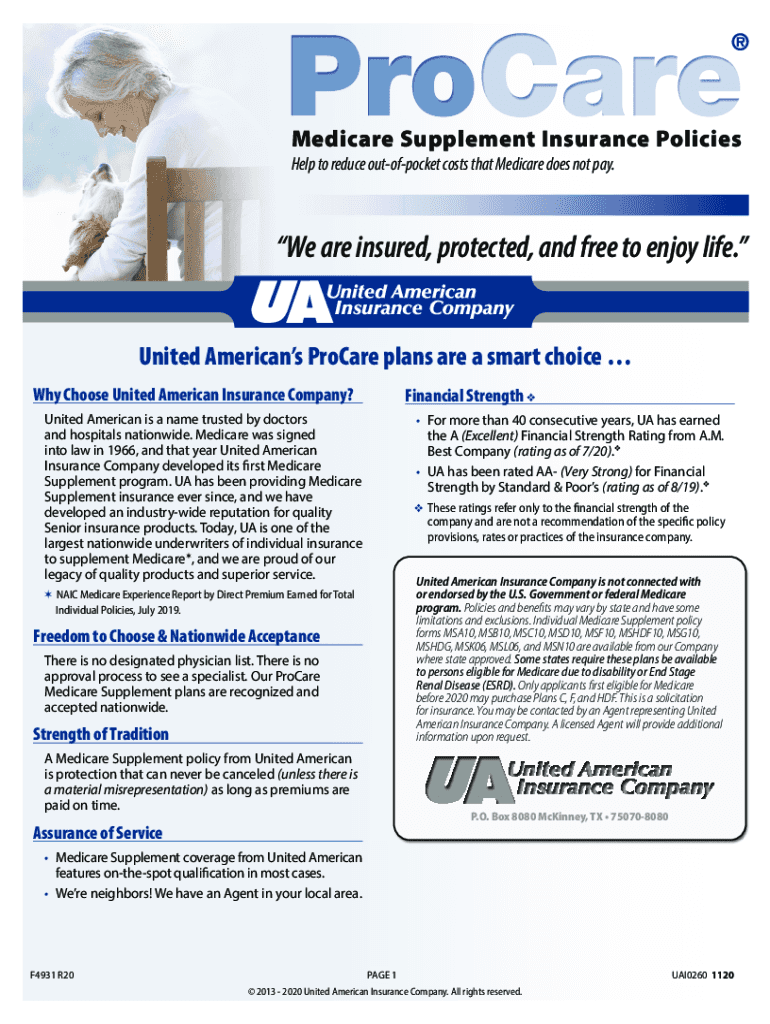 Medicare Supplement Insurance Policies Help to reduce outofpocket costs that Medicare does not pay. We are insured, protected, and free to enjoy life. United Americans ProCareplans are a smart choice