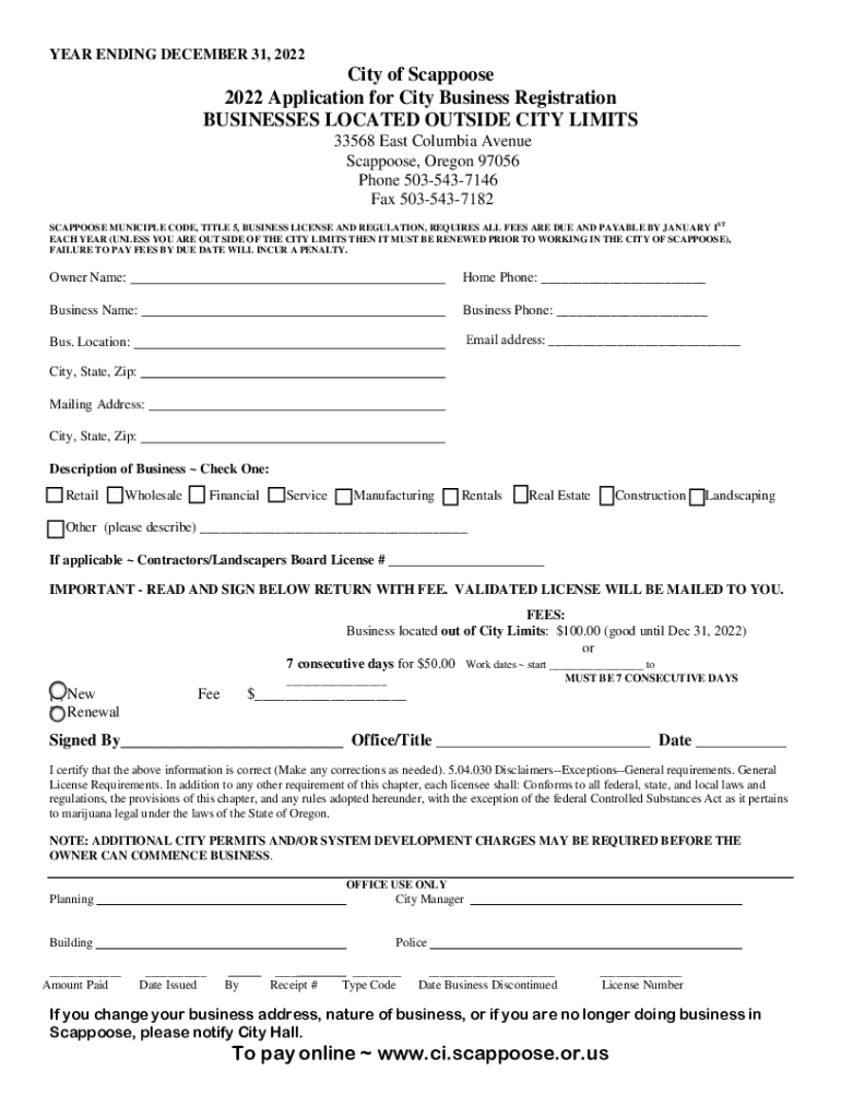 2022 Application for City Business Registration