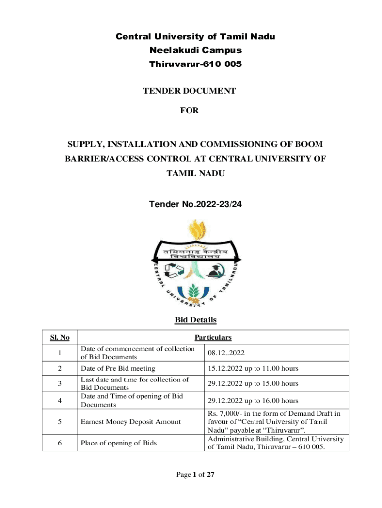 Clearly outline the terms and conditions of the tender process, including any mandatory pre-bid meetings or site visits.