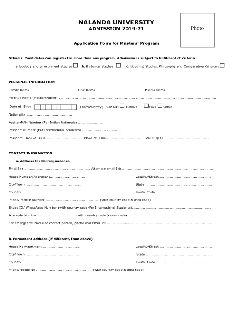 Get the free Nalanda University: Admission of International Students for ...