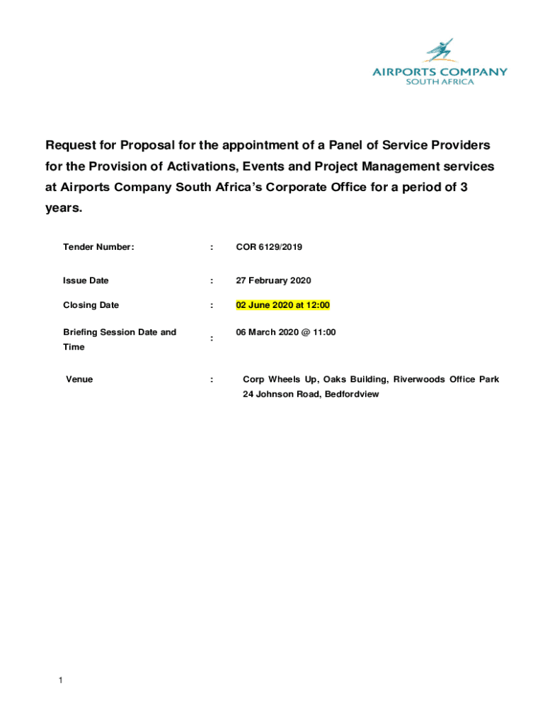 Request for Proposal for the appointment of a Panel of Service Providers for the Provision of Activations, Events and Project Management services at Airports Company South Africa's Corporate Office