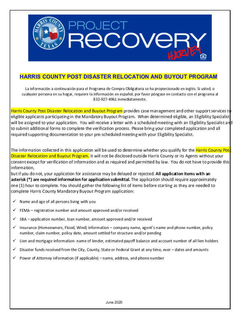 Get the free Post Disaster Relocation and Buyout ProgramTexas