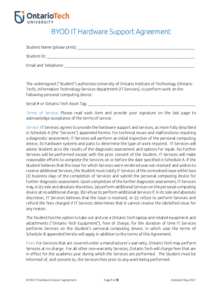 Get the free BYOD IT Hardware Support Agreement - Ontario Tech University