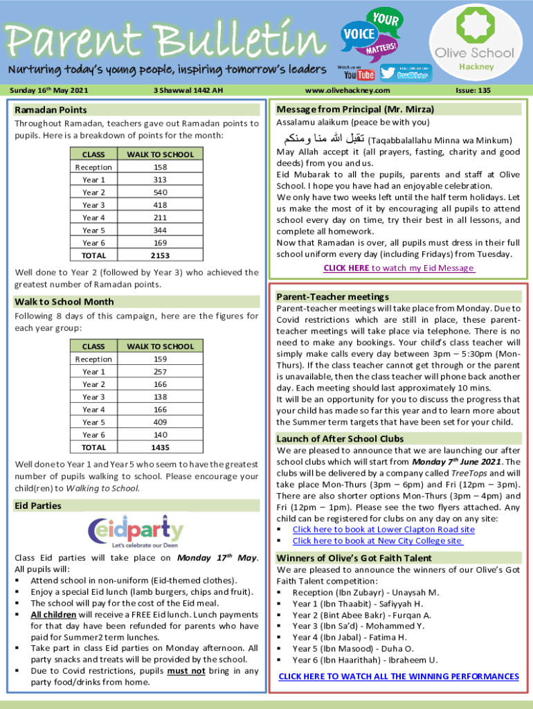 Nurturing today's young people, inspiring tomorrow's leaders Sunday 16th May 20213 Shawl 1442 AHW.olive hackney.com Ramadan PointsMessage from Principal (Mr. Mira)Throughout Ramadan, teachers gave