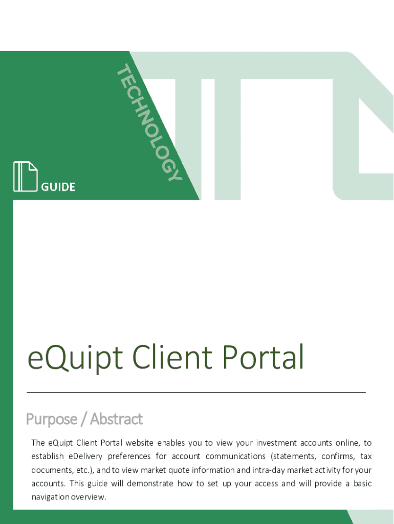 Equip Client Portal Purpose / Abstract To equip Client Portal website enables you to view your investment accounts online, to establish delivery preferences for account communications (statements,