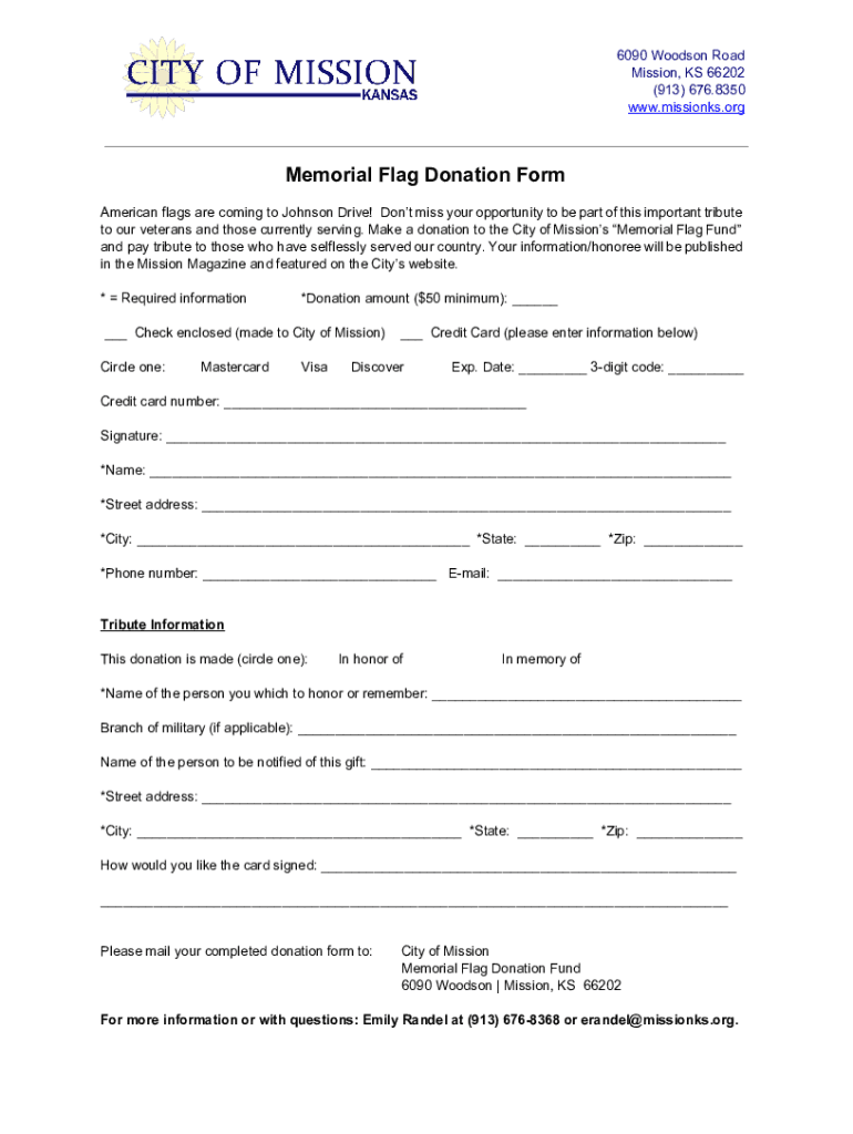 Get the free Memorial Flag Donation Form - The City of Mission, KS