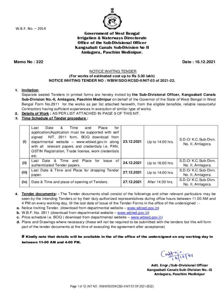 Get the free WBF No-2914 - Irrigation & Waterways Department - wbiwd gov