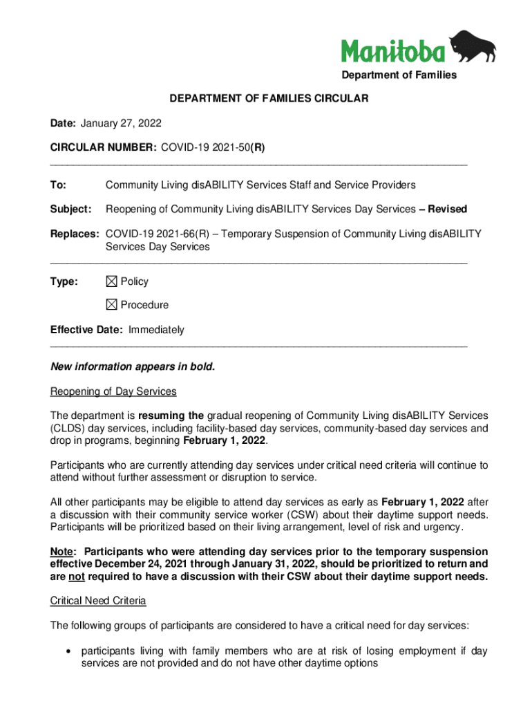Get the free From the DEPARTMENT OF FAMILIES... - Inclusion Winnipeg