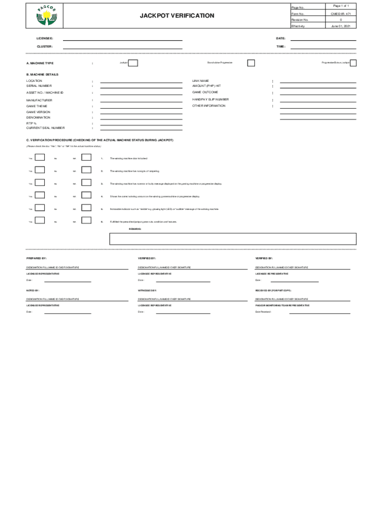 Get the free Form 46 - Jackpot Verification.pdf - PAGCOR
