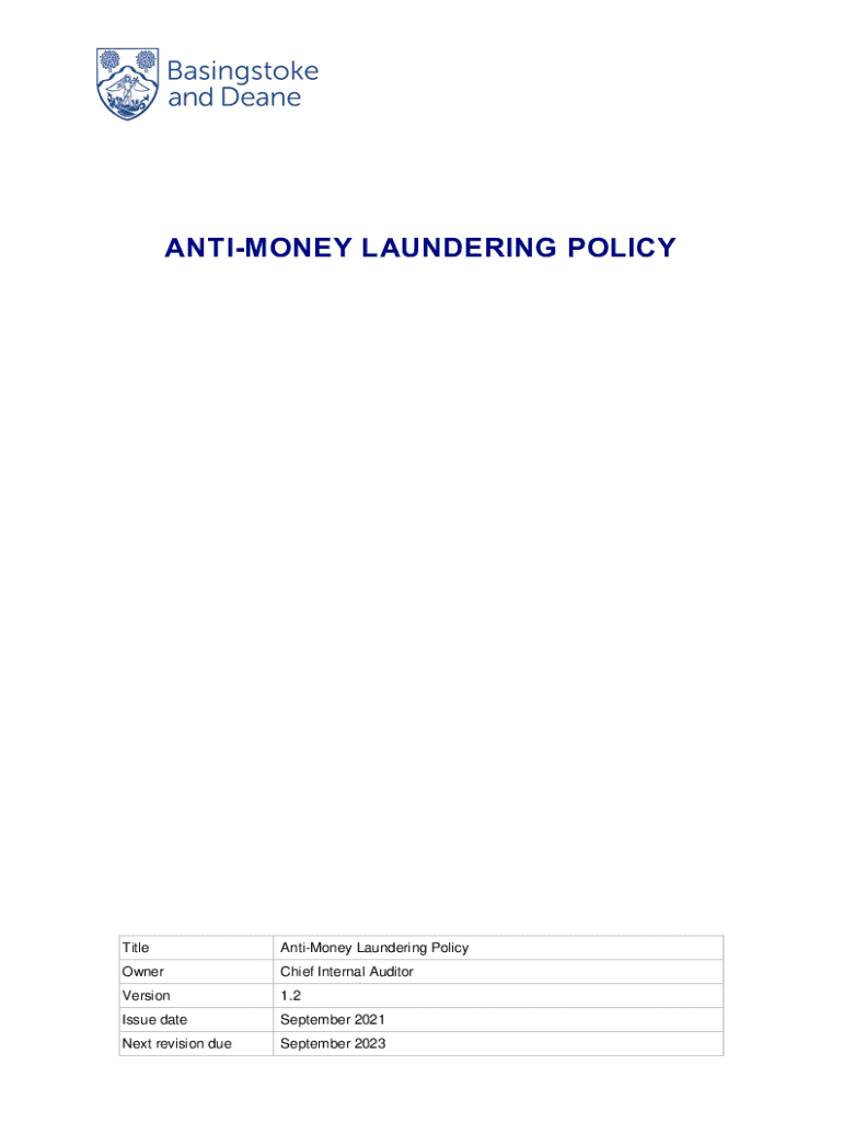 ANTIMONY LAUNDERING POLICYTitleAntiMoney Laundering PolicyOwnerChief Internal AuditorVersion1.2Issue date September 2021Next revision due September 2023Contents 1. Introduction ............................................................................................................