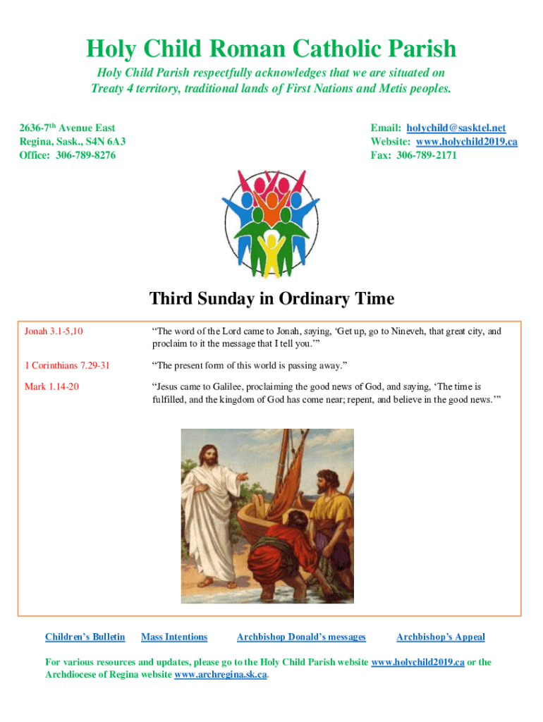 Holy Child Roman Catholic Parish Holy Child Parish respectfully acknowledges that we are situated on Treaty 4 territory, traditional lands of First Nations and Métis peoples. 26367th Avenue East