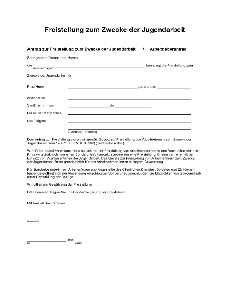 Ant rag our Freistellung sum Zeke her Jugendarbeit/ArbeitgeberantragSehr George Dame UND Herren,