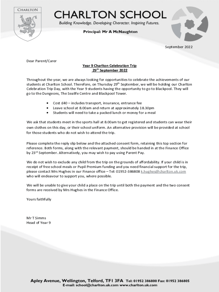 Dear Parent/Carrier 9 Charlton Celebration Trip