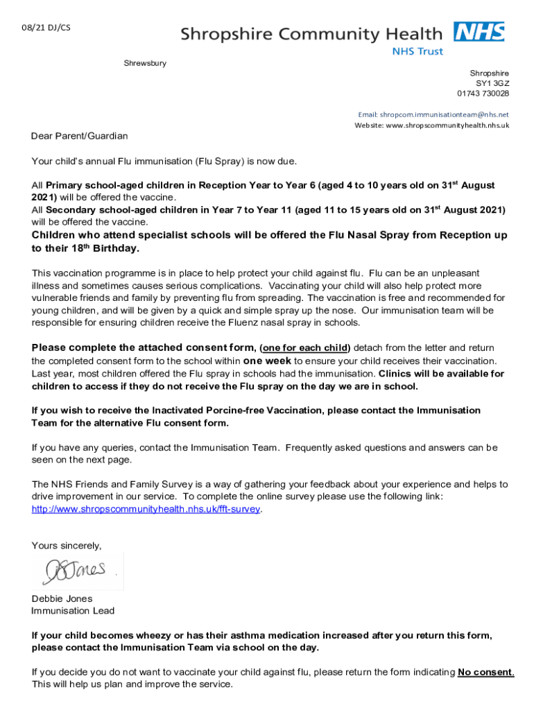 08/21 DJ/CSShrewsbury0404/2004/ 202 04/2020Shropshire SY1 3GZ 01743 730028 Email: shropcom.immunisationteam@nhs.net Website: www.shropscommunityhealth.nhs.ukDear Parent/Guardian Your children annual