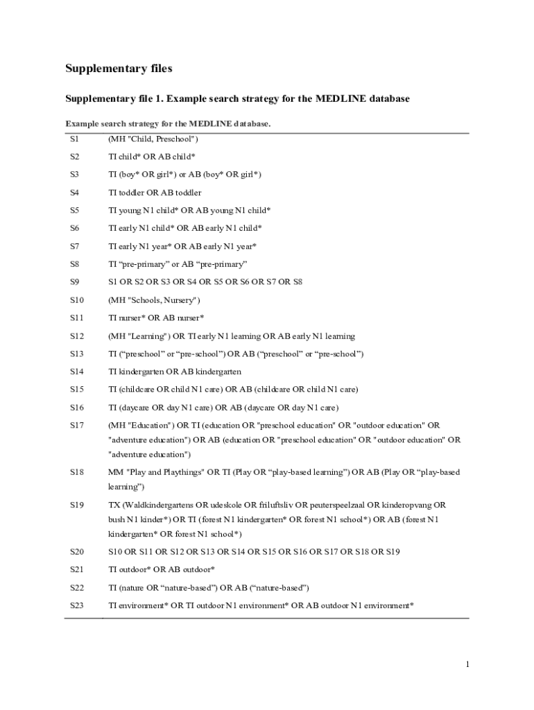 Supplementary files Supplementary file 1. Example search strategy for the EDLINE database Example search strategy for the EDLINE database. S1(MH \” Child, Preschool\”)S2TI child* OR AB child×S3TI