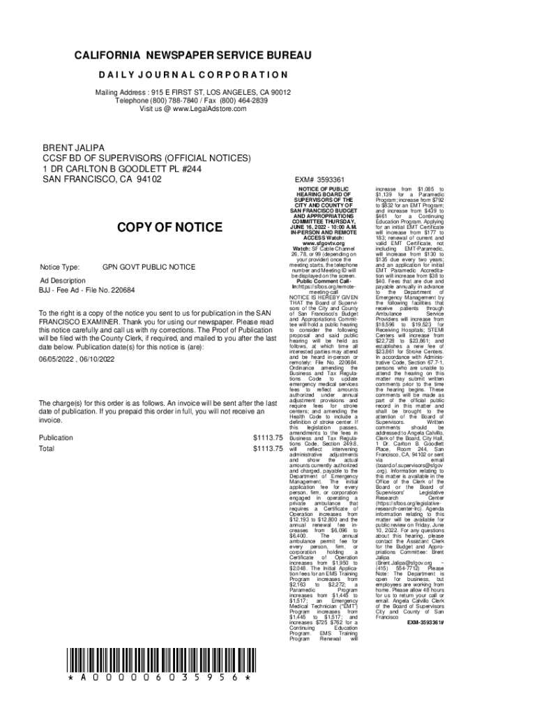 CALIFORNIA NEWSPAPER SERVICE BUREAU DAILY JOURNAL CORPORATION Mailing Address : 915 E FIRST ST, LOS ANGELES, CA 90012 Telephone (800) 7887840 / Fax (800) 4642839 Visit us @ www.LegalAdstore.comBRENT