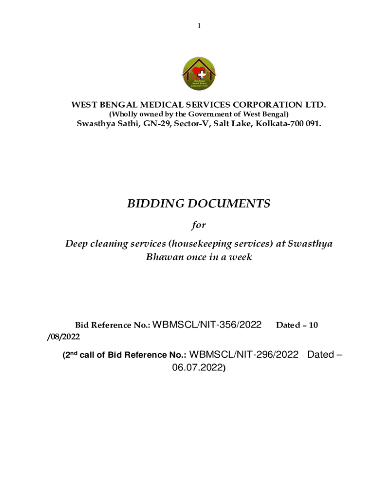 1WEST BENGAL MEDICAL SERVICES CORPORATION LTD. (Wholly owned by the Government of West Bengal)Swarthy Sat hi, GN29, Sector, Salt Lake, Kolkata700 091.BIDDING DOCUMENTS for Deep cleaning services (housekeeping