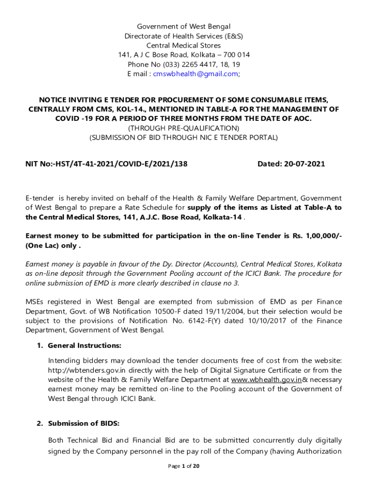 Get the free Notice Inviting e-Tender est Bengal Medical Services Corpo