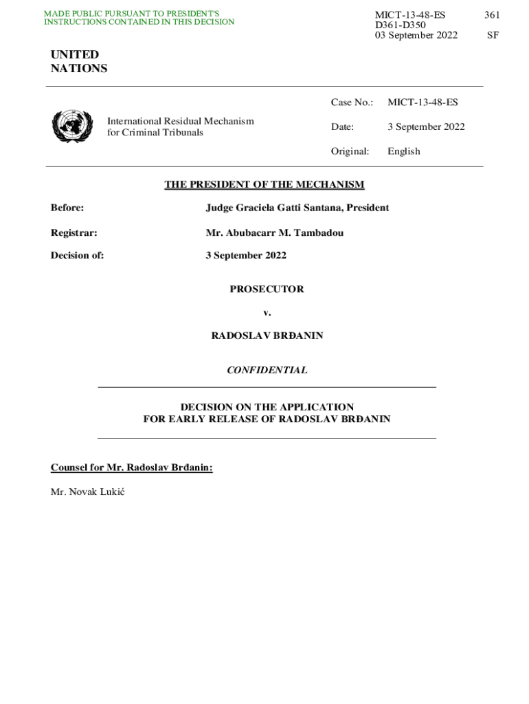 MADE PUBLIC PURSUANT TO PRESIDENT\'S INSTRUCTIONS CONTAINED IN THIS DECISIONMICT1348ES D361D350 03 September 2022UNITED NATIONSInternational Residual Mechanism for Criminal Tribunals Case No.:MICT1348ESDate:3