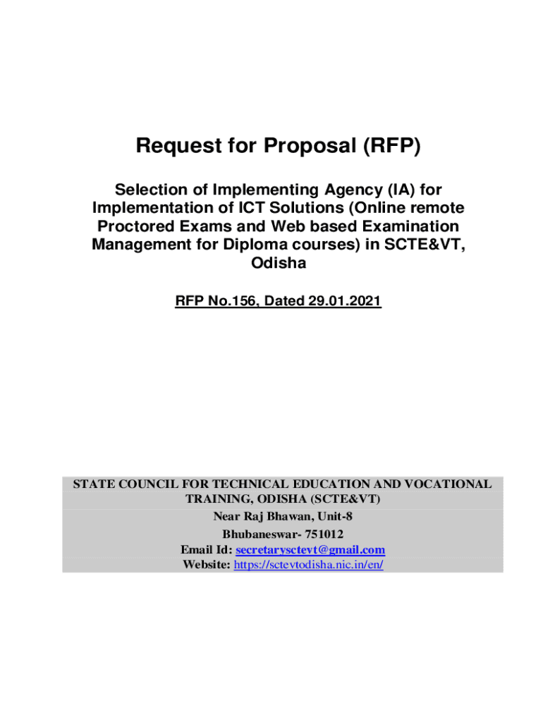 Request for Proposal (RFP) Selection of Implementing Agency (IA) for Implementation of ICT Solutions (Online remote Proctored Exams and Web based Examination Management for Diploma courses) in STEVE,