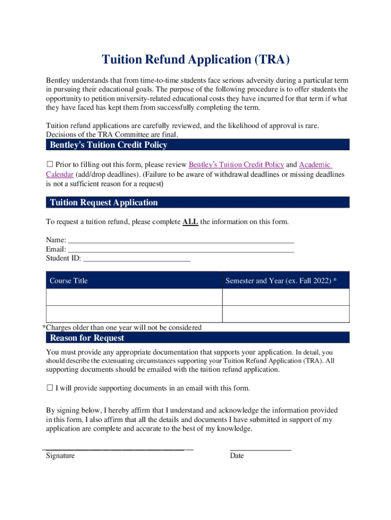 Get the free Bentley University Tuition Refund Application (TRA) - AWS