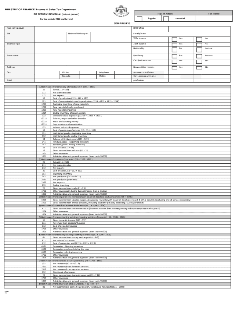 Type of Return PIT RETURN/ INDIVIDUAL (natural person)