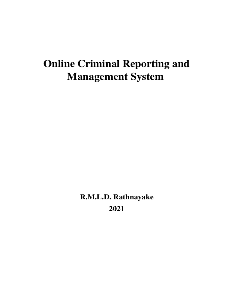 Online Criminal Reporting and Management System. M.L.D. Rathnayake 2021iOnline Criminal Reporting and Management System thesis submitted for the Degree of Master of Information Technology. M.L.D.