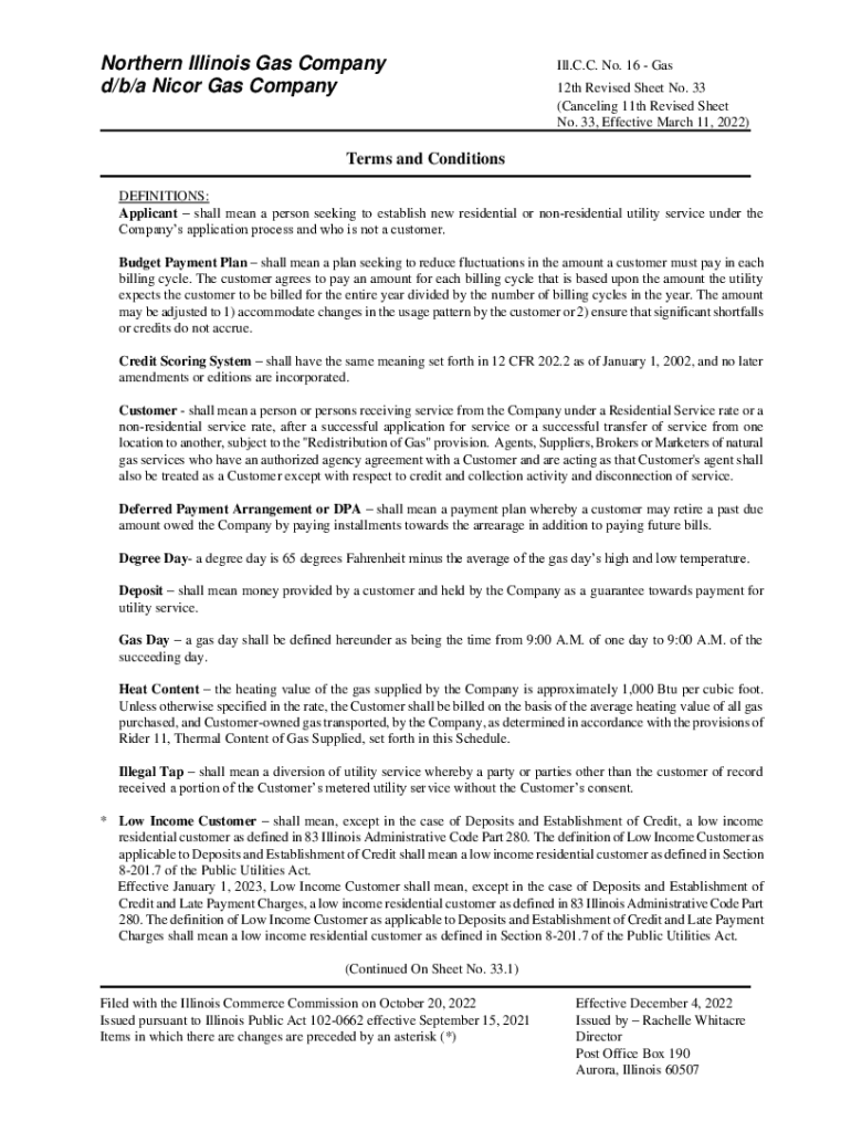 Northern Illinois Gas Company d/b/a Nicer Gas Company Ill. C.C. No. 16 Gas 12th Revised Sheet No. 33 (Canceling 11th Revised Sheet No. 33, Effective March 11, 2022)Terms and Conditions DEFINITIONS: