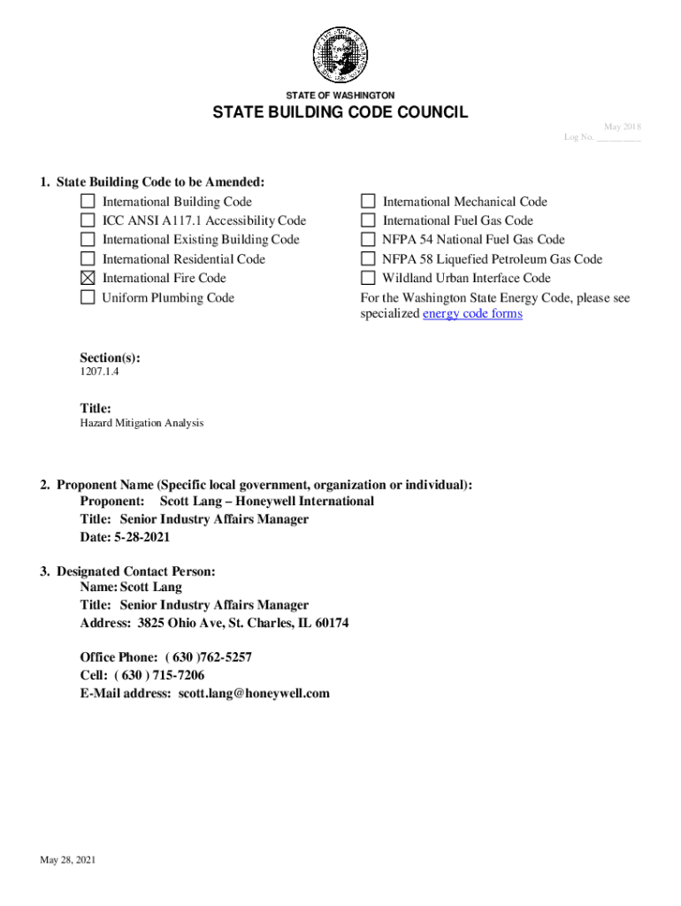 STATE OF WASHINGTONSTATE BUILDING CODE COUNCIL May 2018 Log No. ___1. State Building Code to be Amended: International Building Code ICC ANSI A117.1 Accessibility Code International Existing Building