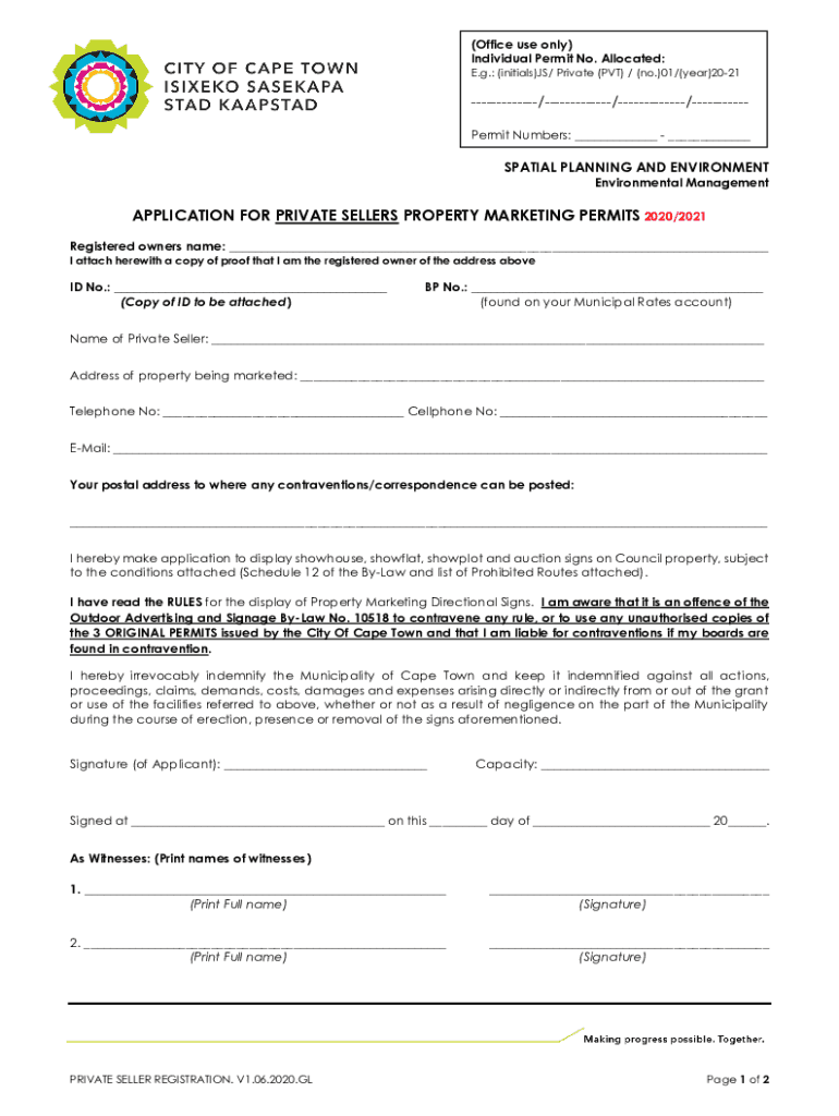 E.g.: (initials)JS/ Private (PVT) / (no.)01/(year)2021///Permit Numbers: ___ ___SPATIAL PLANNING AND ENVIRONMENT