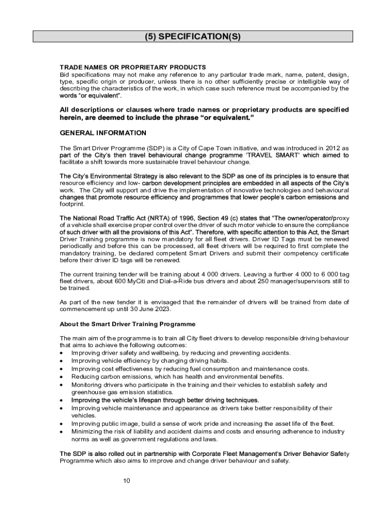 (5) SPECIFICATION(S)TRADE NAMES OR PROPRIETARY PRODUCTS Bid specifications may not make any reference to any particular trademark, name, patent, design, type, specific origin or producer, unless there