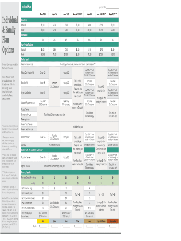 Traditional PlansIndividual & Family Plan OptionsApplication ID # ___ Avert 1500Avera 2750Avera 3500Avera 4200 DHP×Avert 6000Avera 6750 DHP×Avert 8150****Deductible outofnetwork benefits or more