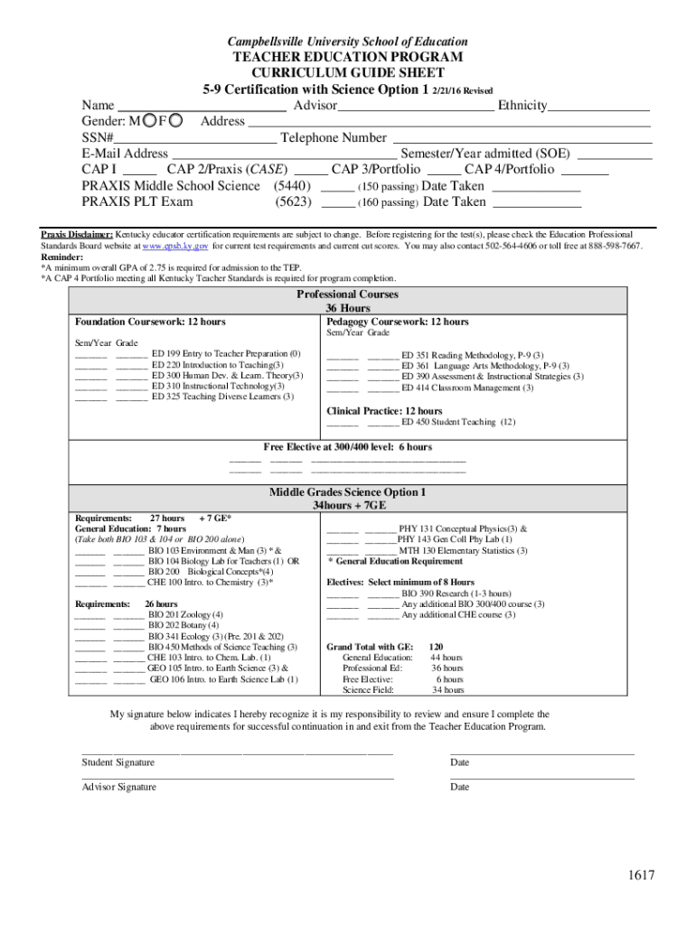 Get the free 5-9 Certification with Science Option 1 2/21/16 Revised