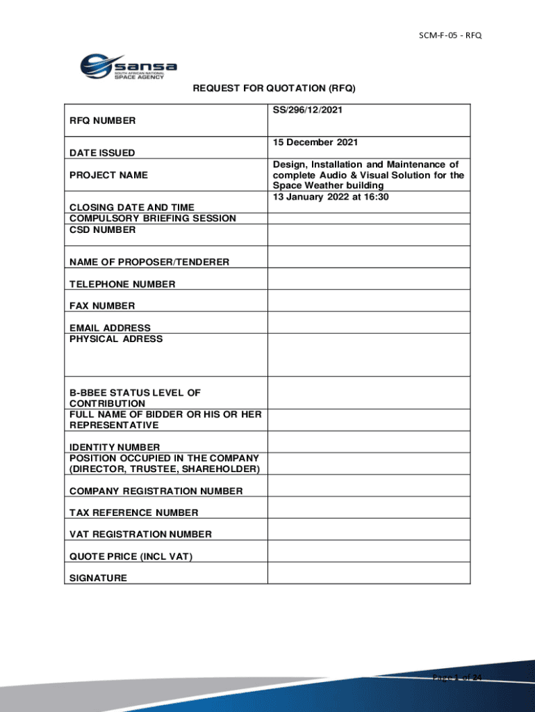 Get the free SCM-F-05 - RFQ Page 1 of 24 REQUEST FOR QUOTATION ...